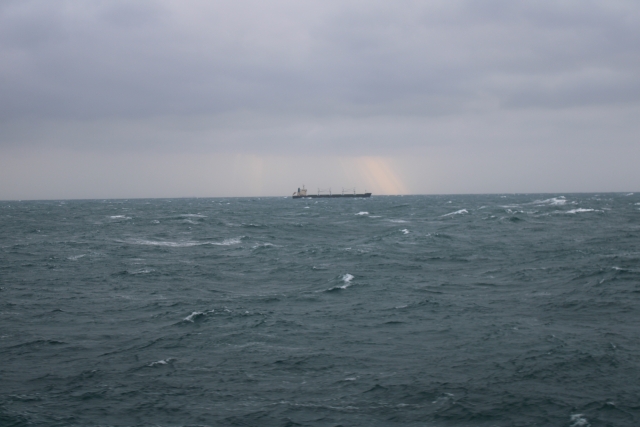 | Im Ärmelkanal war ordertlich Verkehr. Der erste Hafen Cherbourg konnte wegen Sturm nicht angelaufen werden. | |