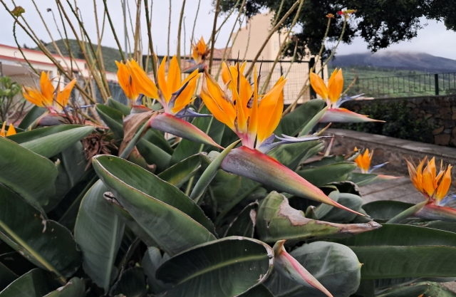 | La Palma am Vulkan Tajogaite der 2021 ausgebrochen ist. Paradiesvogelblume (\(Strelitzia\ reginae\)), auch bekannt als Königs-Strelitzie. | |