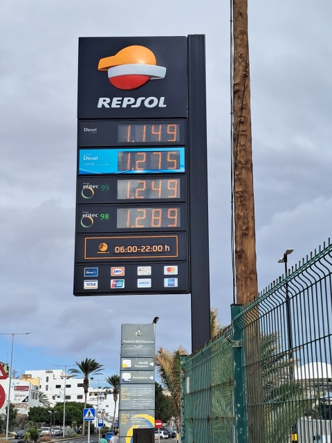 | Fuerteventura, in Puerto de Rosario: solche Benzinpreise sind dort möglich. |