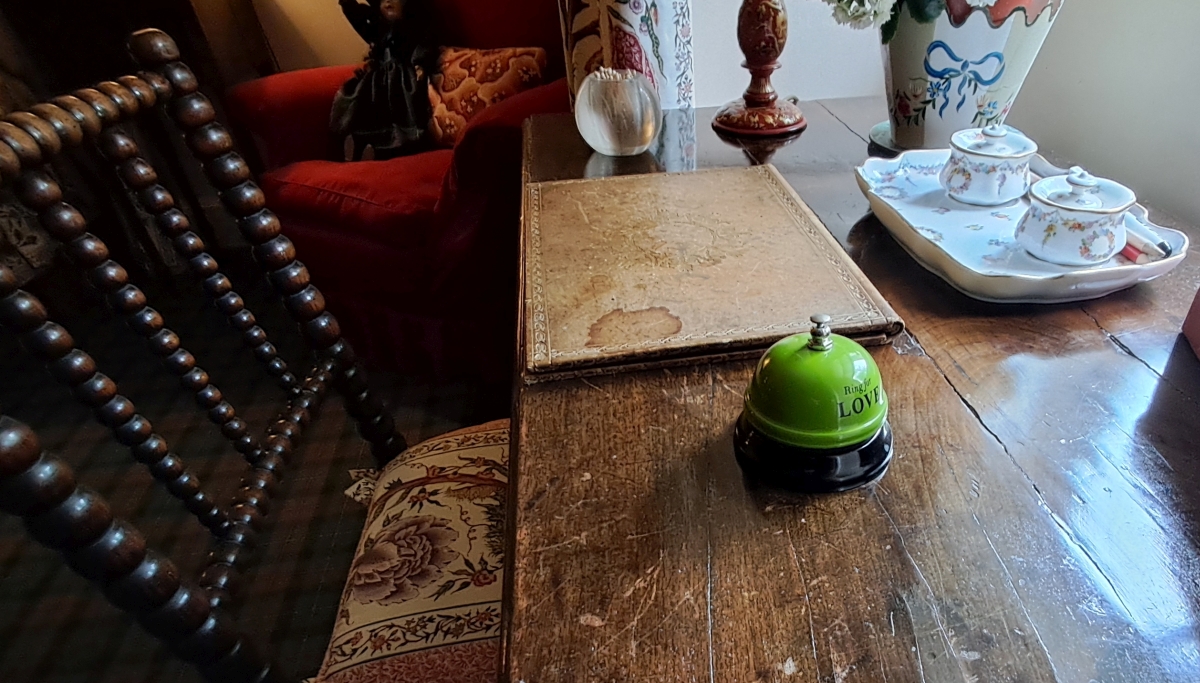 Auffällig war im Wohnzimmer eine Tischglocke mit der Aufschrift „ring for