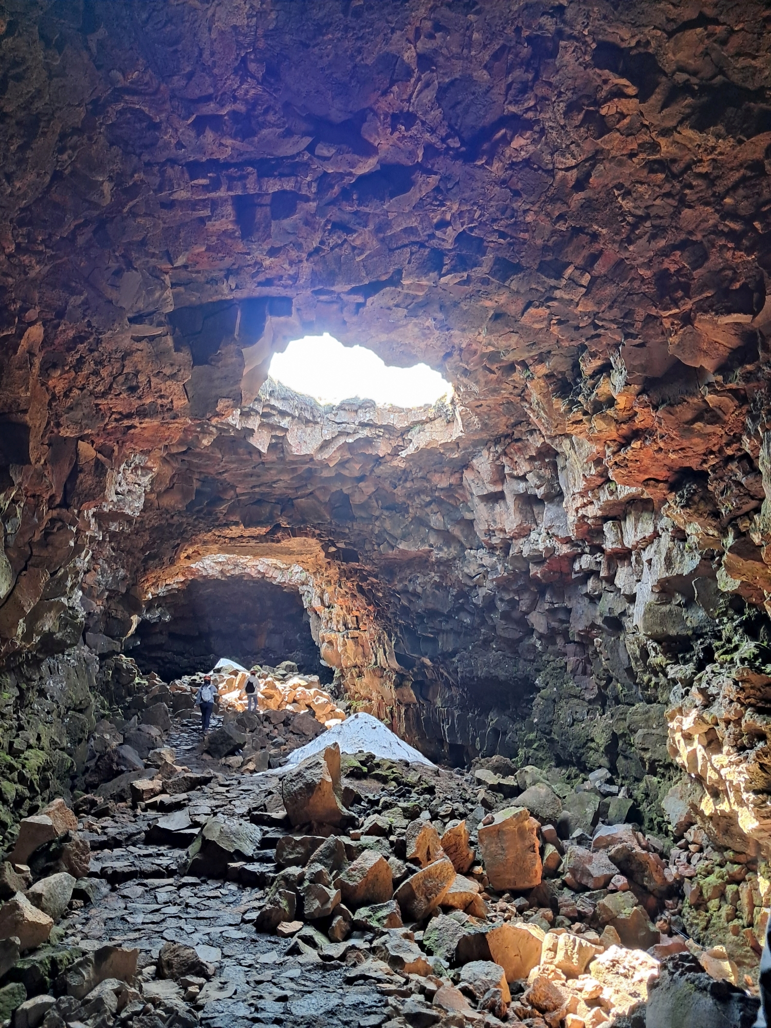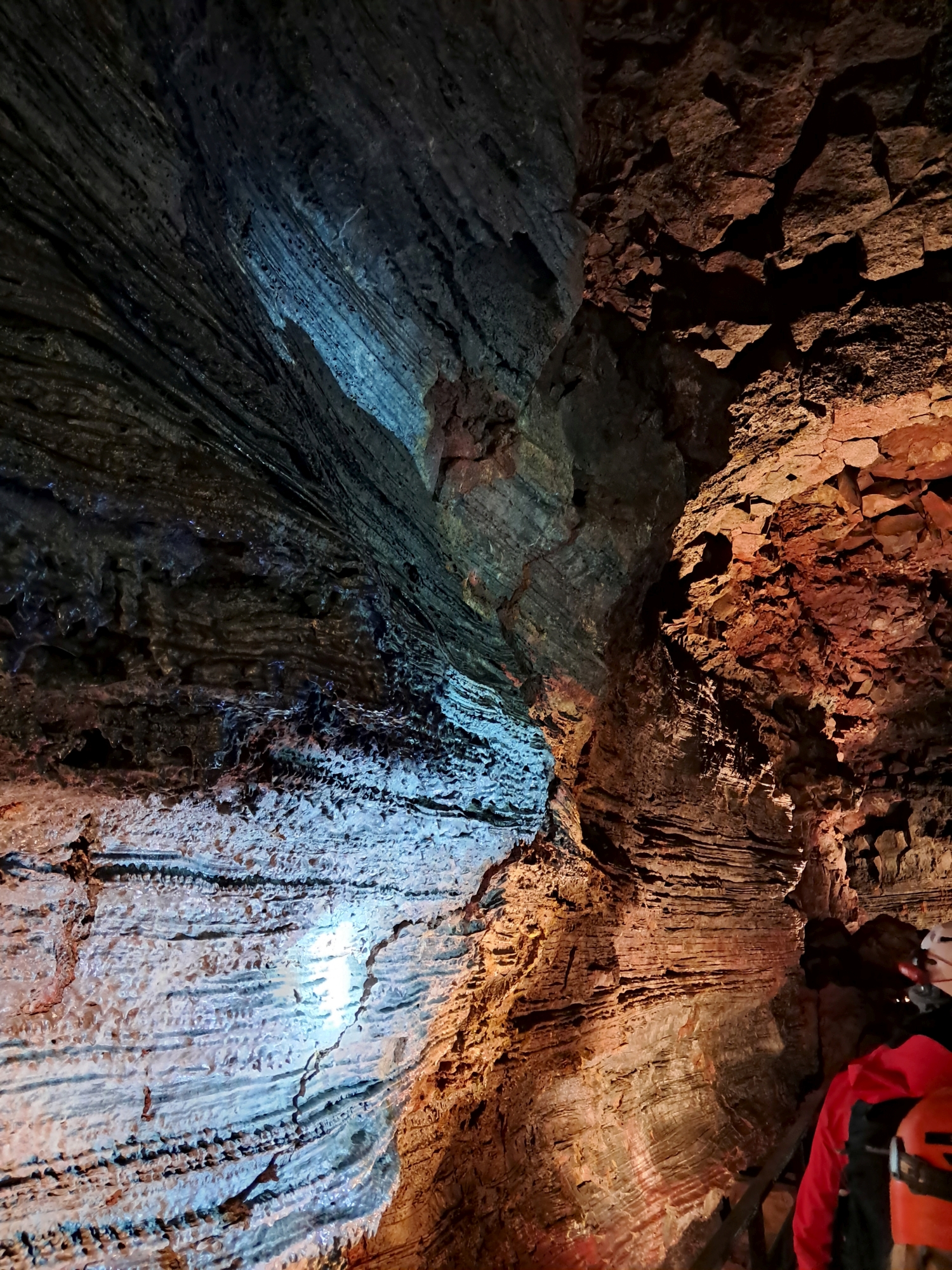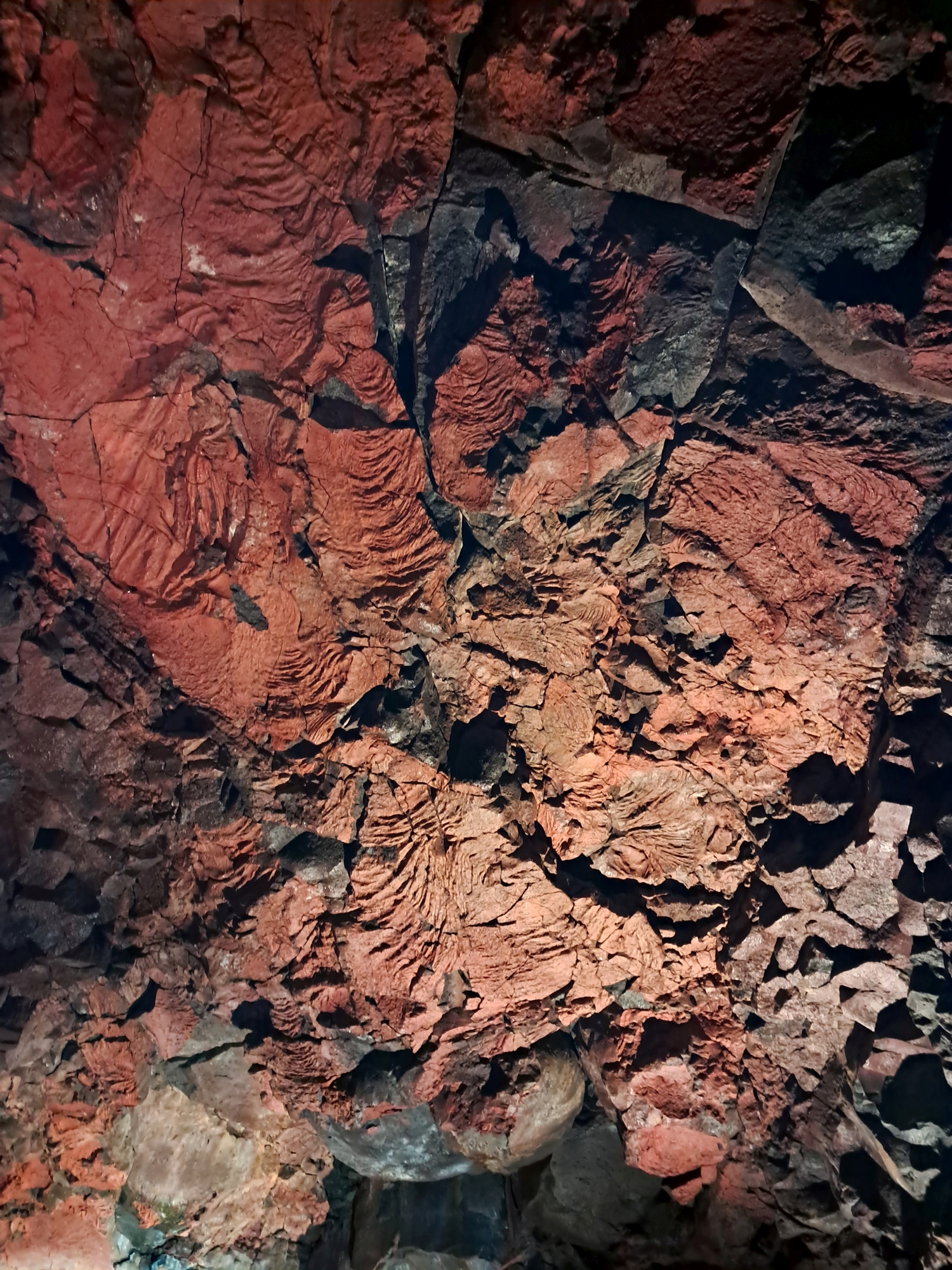 Raufarhólshellir Wenn Lava fließt, kann sich auf Ihrer Oberfläche eine harte "Kruste" bilden. Unter der Kruste fließt die Lava ab und eine lange Höhle bleibt zurück. Wenn das Licht ausgeschaltet wird, herrscht absolute Dunkelheit. |