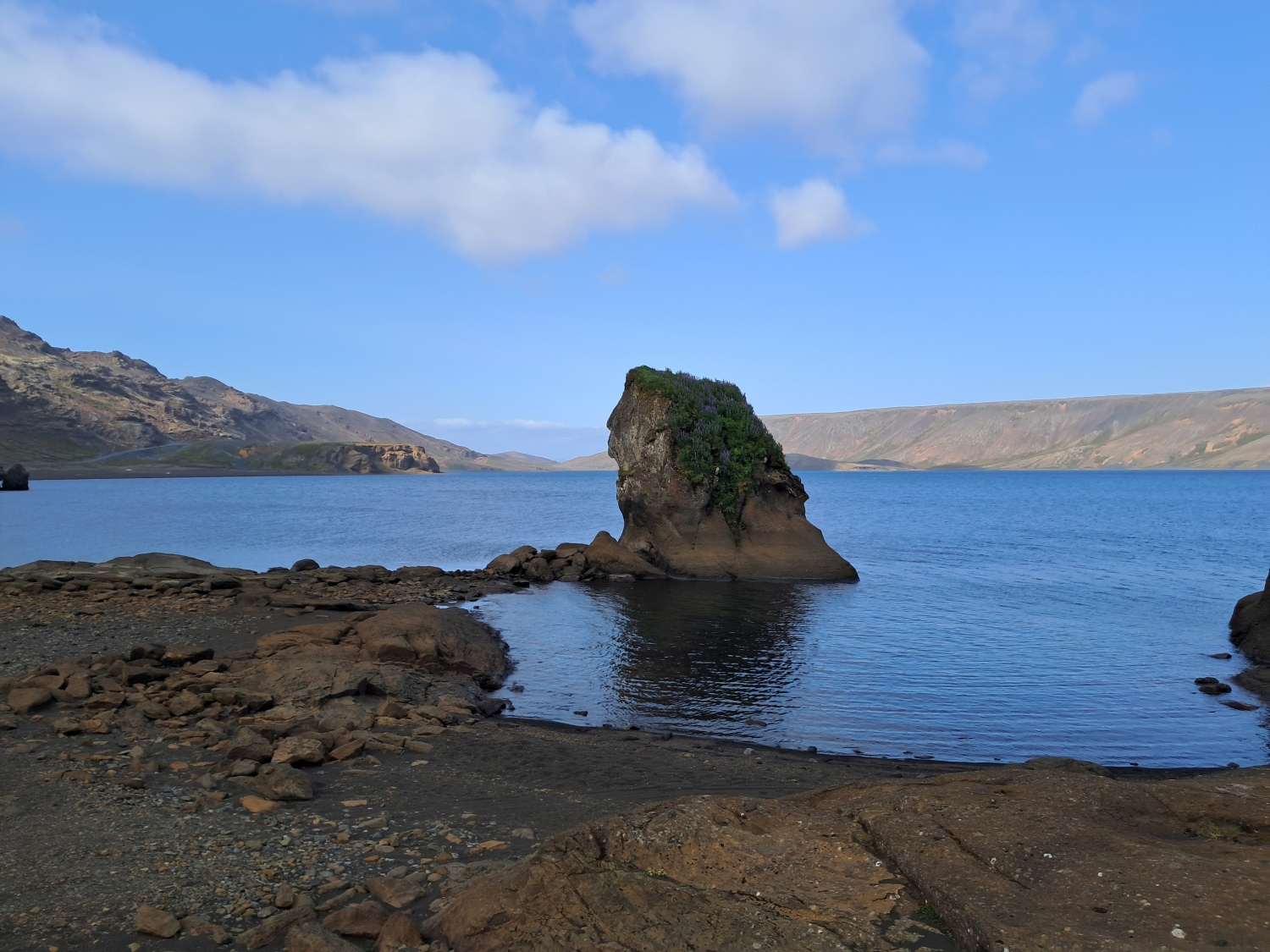 | Indjánahöfði (Indianerkopf). Ein Felsen steht nahe am Ufer und sieht wirklich wie ein Indianerkopf aus. | ![]() |