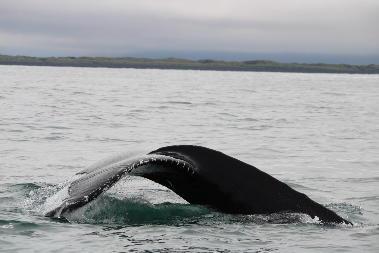 Das wichtige Foto mit dem Schwanz eines abtauchenden Meeresriesen gelang mehrfach. Wenn ein Wal auftaucht, hört man ihn zuerst blasen. Dann sieht man die Fontäne. Und dann kommt er ... |