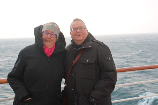 | die Fahrt zurück nach Hamburg war stark bewegt. Hier fiel dann auch ein Unterschied zwischen AIDAbella und AIDAmar auf: die Tische der AIDAbella in den Restaurants hatten kleine Ränder, bei AIDAmar fehlen diese. Bei Sturm (der wirklich Sturm war!) machte sich beim Essen das Geschirr selbständig. So manche Abendgarderobe wurde heftig umgestaltet. Eine Stoffserviette unter dem Teller bremst gut, sodass man noch rechtzeitig reagieren kann ... | |