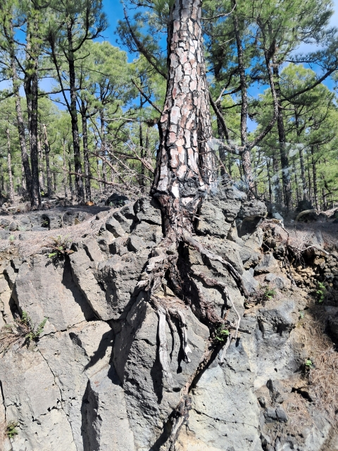 | Die Kanarische Kiefer ist ziemlich krisenfest ... sie bohrt sich in härtesten Fels ... | |
