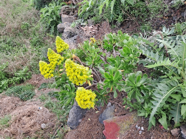 | La Palma, Rosetten-Dickblatt (Aeonium arboreum) am Weingut Bodegas Llanovit | |