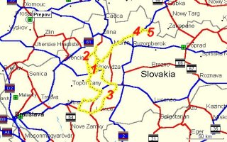 1 = Bojnice (Camping Bojnice, entgegen ADAC - Führer zum Campen wegen Geländebeschaffenheit ungeeignet, vermietet aber Hütten) 2 = Cicmany 3 = Banska Stiavnica 4 = Oravsky Podzamok (*Hotel Oravan nett, deutsch- und englischsprachig) und Burg Oravsky Hrad (unbedingt sehenswert) 5 = Freilichtmuseum Zuberec - Brestova |