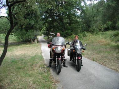 Wer noch nie mit dem Motorrad in dieser Gegend war, sollte wissen, daß der Asphalt auch bei Trockenheit spiegelglatt sein kann. Dieser Effekt tritt vor allem in Staädten und auf vielbefahrenen Straßen auf. Start mit durchdrehendem Hinterreifen ist selbst mit meiner 50 PS - Gummikuh kein Problem.