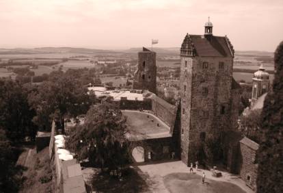 Der 4.Tag: Eine Fahrt zur Burg Stolpen hatte uns auch die Wirtin empfohlen. Diese Burg liegt auf einer Basaltorgel (auskristallisierte Basaltpfeiler) und die sechseckigen Basalttrümmer dienten auch gleich als Baumaterial. Das Gemäuer beherbergt eine komfortabel eingerichtete Folterkammer und auch die Räume in denen August der Starke die Gräfin Cosel gefangen hielt. Diese wunderschöne Frau hatte er beim Brand ihres Hauses erlebt, und wie sie durch umsichtige Anordnungen das Chaos in den Griff bekam und auch der Brand unter Kontrolle gebracht werden konnte beeindruckte ihn stark. Nach einigen Jahren stand sie aber seinen politischen Plänen im Weg und wurde – als sie sich nicht freiwillig zurückzog – kurzerhand auf der Burg für die restlichen 50 Jahre ihres Lebens inhaftiert. |