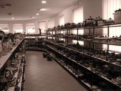 6.Tag: Das Bunzlauer Geschirr hat es uns schon lange angetan. Man kann die Sachen ab Fabrik kaufen. So fuhren wir hin um auszukundschaften wie das geht, was es kostet und ob man sich die Waren auch zuschicken lassen kann. Bunzlau heißt seit es polnisch ist Boleslawiec. Es ist eine ziemlich graue Industriestadt, und als touristisches Ziel hatte ich es mir schöner vorgestellt. Hier wurde nicht so intensiv wie in Prag oder Krakau renoviert. Nach einigen Irrfahrten erreichten wir die Fabrik, es gibt einen großen Verkaufsraum, und das ganze Sortiment kann bewundert und erworben werden. Mit dem Versand klappte es nicht, erst ab einem Umsatz von 3000.- € verschickt das Werk. Wir wollten uns noch ein wenig Schlesien ansehen und begannen noch eine Runde zu drehen. Plötzlich meldete Moni wieder einen Ausfall der Ladekontroll – Lampe. Einen zweiten Rotor hatten wir natürlich nicht dabei... Seltsamerweise brach aber der Strom nicht zusammen, sondern alles – bis auf das Lämplein – funktionierte. Wir brachen die Runde ab und sahen zu dass wir nach Karpacz zurück kamen. Weitere Tests ergaben dass der Rotor in Ordnung war, also musste es diesmal den Regler irgendwie erwischt haben. Vielleicht der Rückstromschalter? Wir beschlossen einen geordneten Rückzug in deutsche Lande wo es Hilfe geben könnte. | ![]() |
