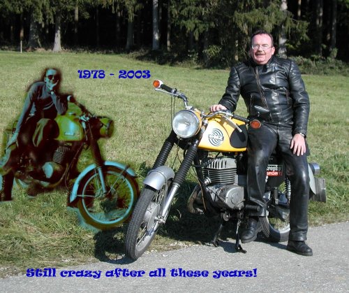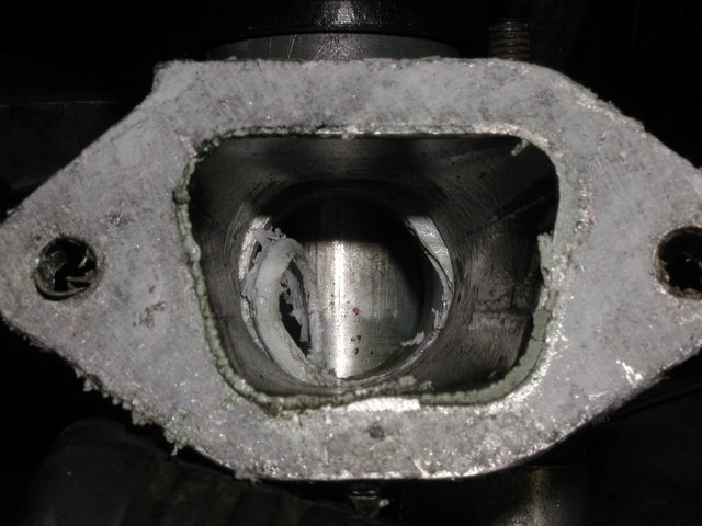 Unerfahren wie ich war fuhr ich den Motor kaputt und eine MZ ETS 250 folgte. Die hielt auch nicht sehr lange, ich musste den Motor öfter als das Hinterrad wechseln. Noch zwei MZ's folgten, dann eine Yamaha XS 400, die ich vor dem Schrottplatz rettete und zwei Jahre fuhr. Die Auspufftöpfe waren beim Kauf durchgerostet, aber wozu hat man einen Hund?? Die Hundefutter – Büchsen passten ohne Boden prima über die Auspufftöpfe und ich lötete sie mit Silberlot fest. Der TÜV – Prüfer befand es für gut. Meiner alten Liebe zur MZ ETS 250 bin ich treu geblieben. Diese hier hat sich besonders beliebt gemacht als ich den allerersten Startversuch unternahm: Ein Kick, eine Fehlzündung; gleichzeitig ein helles Knacksen, dann war der Motor fest: Kolbensicherungsring vom Vorbesitzer nicht ordentlich befestigt.... Beim Öffnen des Motors fand ich dann dieses: Die Emmi war noch jungfäulich, zumindest war etwas Jungfernhaut - ähnliches im Einlasstrakt (!).... Da hat es wohl einer gut gemeint.... aber Silikon ist bei Emmis wohl eher nicht vonnöten. aber jetzt ist sie wieder heile! |