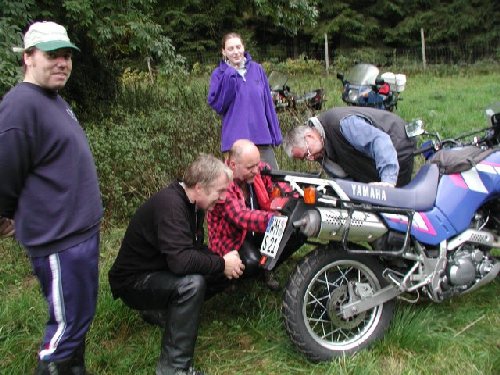 | Vorher musste aber noch Stephies Ténéré einer gründlichen Prüfung durch anwesende Spezialisten unterzogen werden! | ![]() |