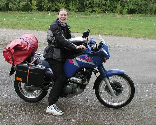 | Moni’s Kuh hat wohl im Moment ihr Repertoire an Quälereien erschöpft und benahm sich lammfromm, meine Kuh stotterte etwas im Regen, später fand ich etwas Wasser im Vergaser, und das obwohl ich den großen Elefantenboy auf dem Tank spazieren fahre.... |