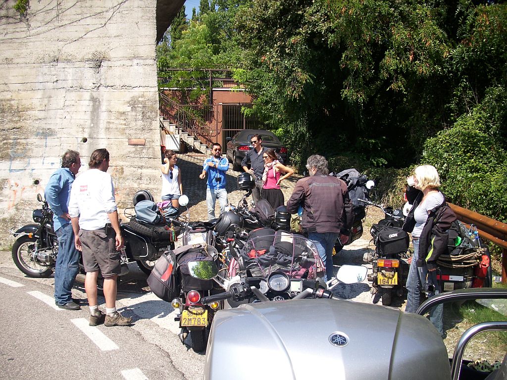 Diese Herrschaften hier trafen wir zufällig nahe der Stadt Garda. Sie waren von Shanghai nach Paris unterwegs, seit 3 1/2 Monaten etwa. Die Fahrzeuge waren Chingjiang - Gespanne aus China, die Route führte quer durch Asien in die Türkei und weiter nach Italien. Die Mopperln sahen gestresst aus, aber immerhin, das Ärgste hatten sie wohl schon hinter sich ... Im Vordergrund ein modernes Begleitfahrzeug, was die Tour aber nicht mitgemacht hat. Im Netz findet man die Tour unter sidebyside.project oder so. Videos gibts auch - viele sind leider von der GEMA gesperrt. |